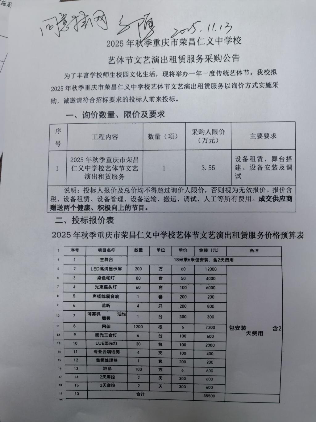 2025年秋季重庆市荣昌仁义中学校 艺体节文艺演出租赁服务