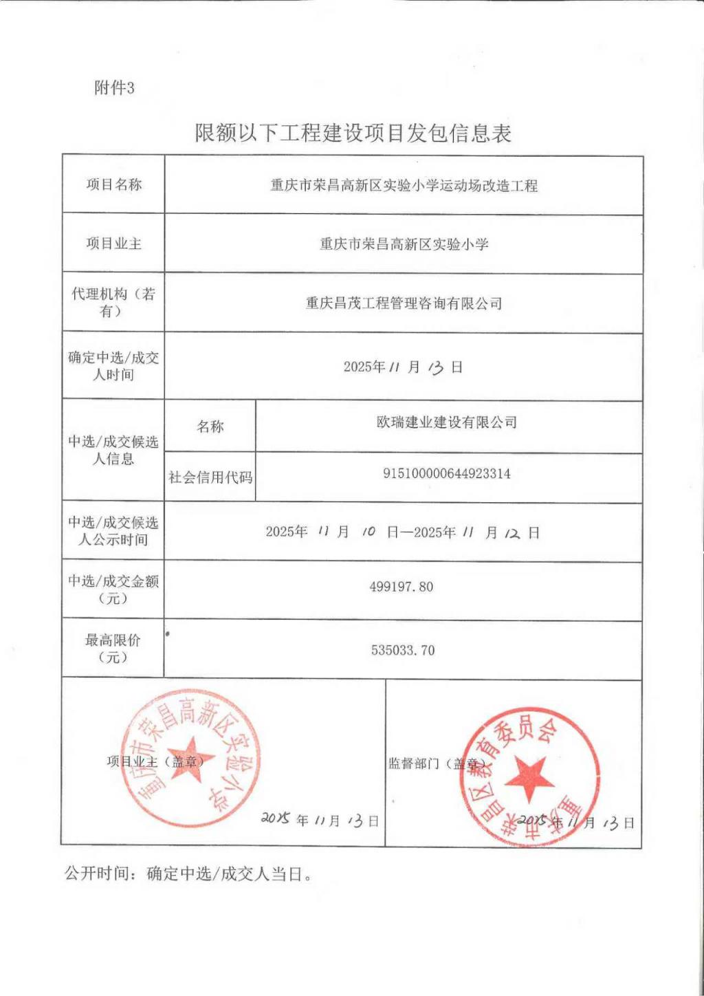 重庆市荣昌高新区实验小学运动场改造工程发包信息公示(补发)