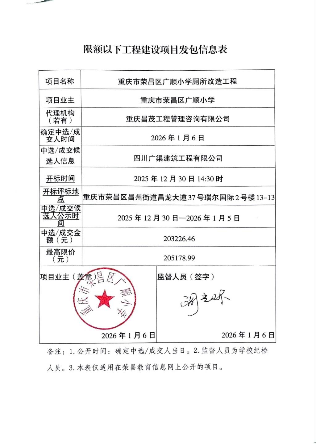 重庆市荣昌区广顺小学厕所改造工程项目发包信息公示